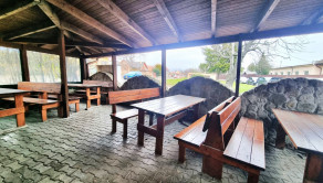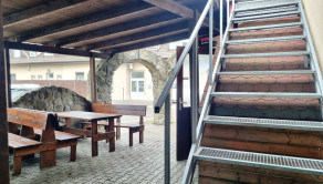Dom je postavený v dobrej kvalite, po rekonštrukcii je vo výbornom stave. Pozemok (uzavretý vnútroblok) sa využíva v lete pre hostí reštaurácie na príjemné posedenie Na prekrytej terase sú drevené stoly a lavice, krb, nechýba ani detské ihrisko a zeleň. Terasa s posedením je tiež pri vstupe do reštaurácie.