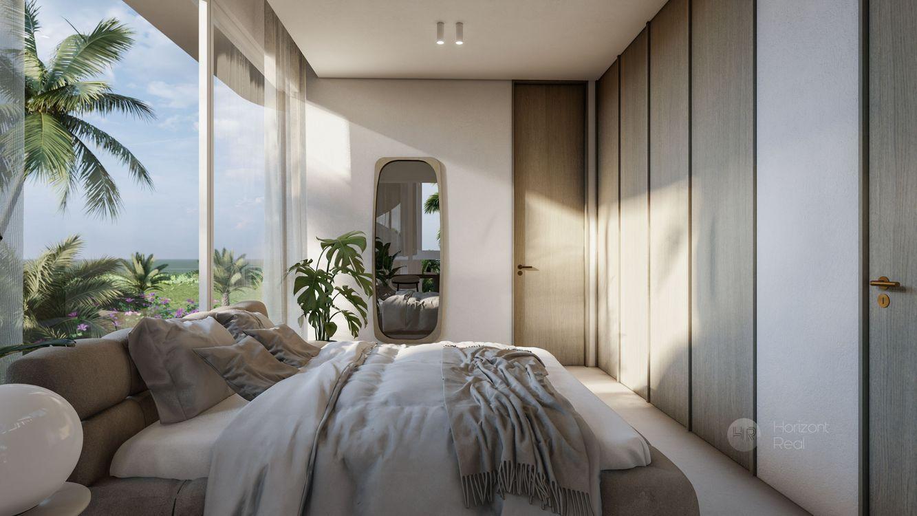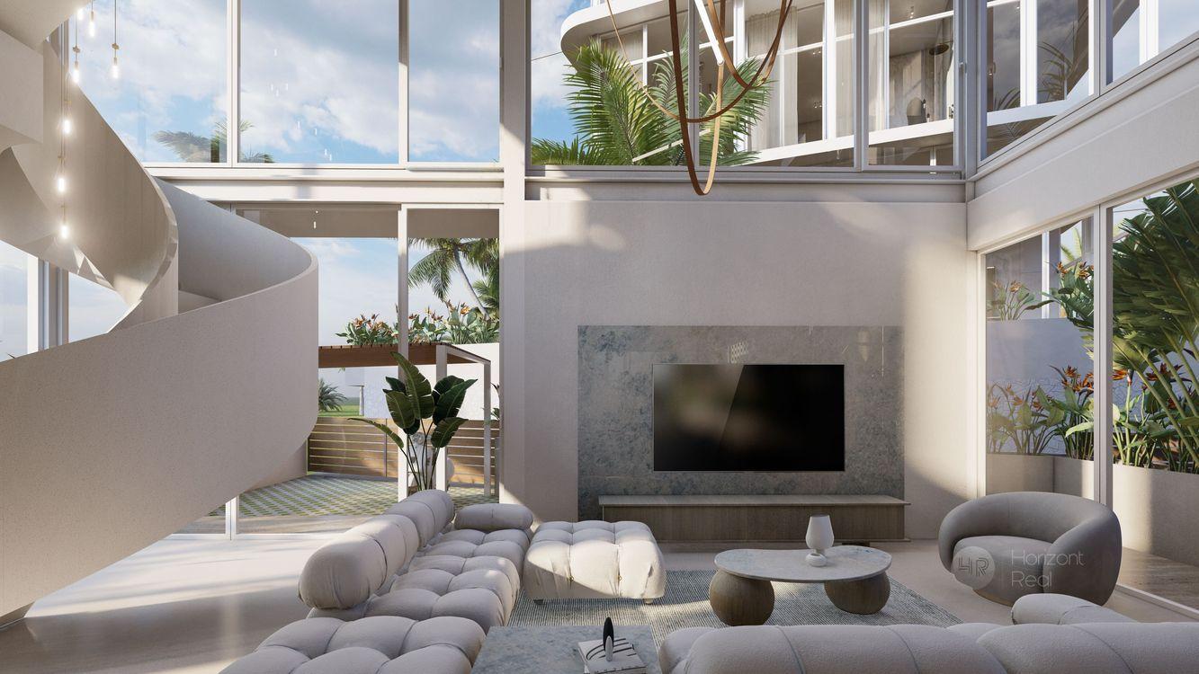 Každá vila je majstrovské dielo spojujúce mramor, luxusné detaily a pôvab. Trojpodlažné loftové vily pozostávajú z troch samostatných spální, každá s vlastou kúpeľňou, obývacej izby prepojenej s kuchyňou a východom do záhrady s bazénom. Na najvyššom poschodí je spálňa s terasou a krásnym výhľadom na oceán. Použité konštrukčné materiály sú najvyššej kvality a interiérový dizajn zabezpečujú špičkový architekti. Vily sú plne zariadené v elegantnom dizajne so zameraním na prepychové prvky (kameň, sklo, drevo...). Obytný priestor je štylizovaný v koncepte vzdušného dizajnu s oknami od podlahy až po strop pre dosiahnutie prirodzeného denného svetla a luxusu.. Každý detail má svoj dôvod. Precízne zvolený interiérový dizajn a materiály sú špeciálne navrhnuté a vyrobené na mieru pre tieto domy. Úžasný infinity bazén s romantickým výhľadom na ryžové polia.