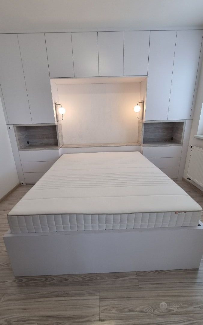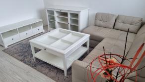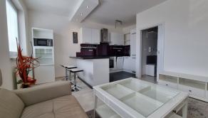 Byt je veľmi pekný, útulný a elegantne zariadený vo svetlých farbách. Všetok nábytok v tomto byte bol vyrobený na mieru. Zariadený je premyslene, s citom a dôrazom na každý detail. V byte tak vzniklo mimoriadne veľa úložného priestoru. Na chodbe sú zabudované skrine, botník, lavica, vešiaková stena a nechýba zrkadlo. V spálni je zabudovaná skriňa, Posteľ je obstavaná krásnym, dizajnovým nábytkom s osveltlením. V spálni sú vytvorené pracovné miesta, takže pracovať môžete komfortne aj z pohodlia domova. V obývačke je kožená rozťahovacia sedačka, veľká kuchynská linka s barovými stoličkami poskytuje komfort s nádychom luxusu.