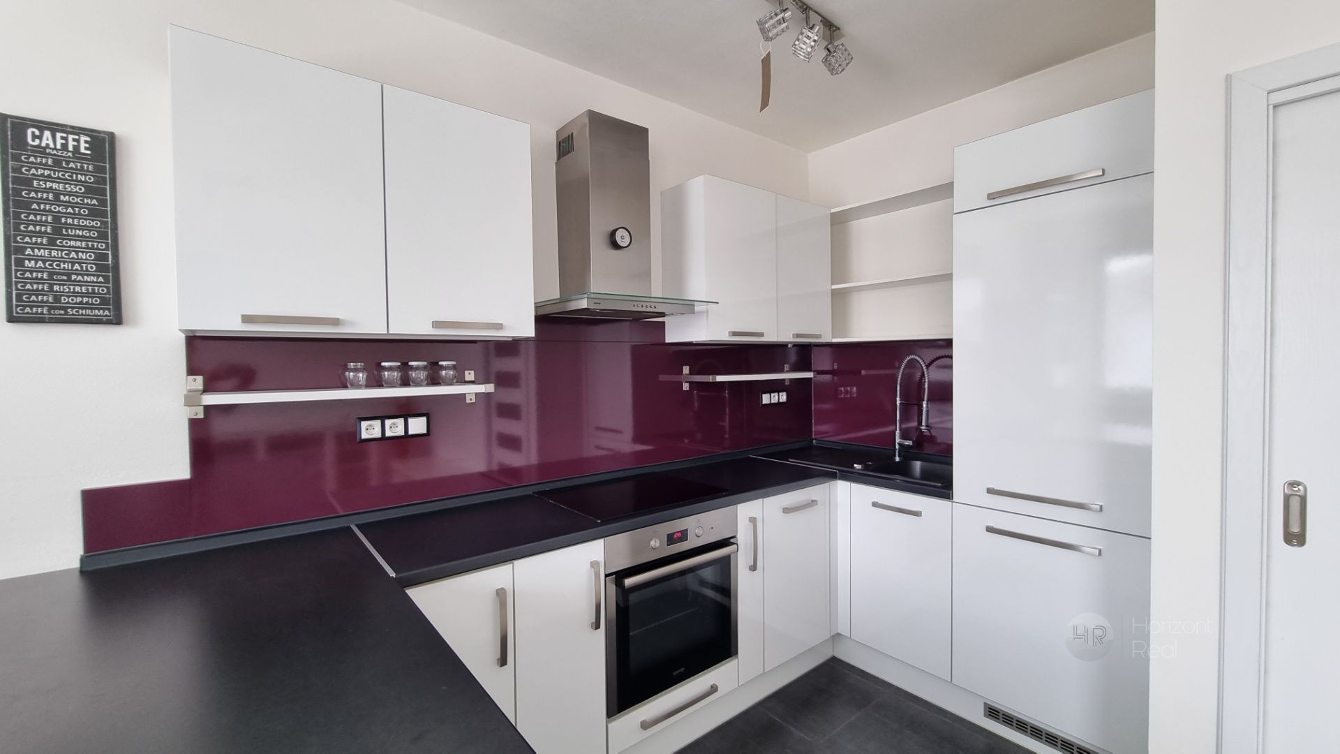 - kuchynská linka so všetkými zabudovanými spotrebičmi - umývačka riadu, sklokeramická varná platňa, chladnička s mrazničkou, elektrická rúra, mikrovlnná rúra