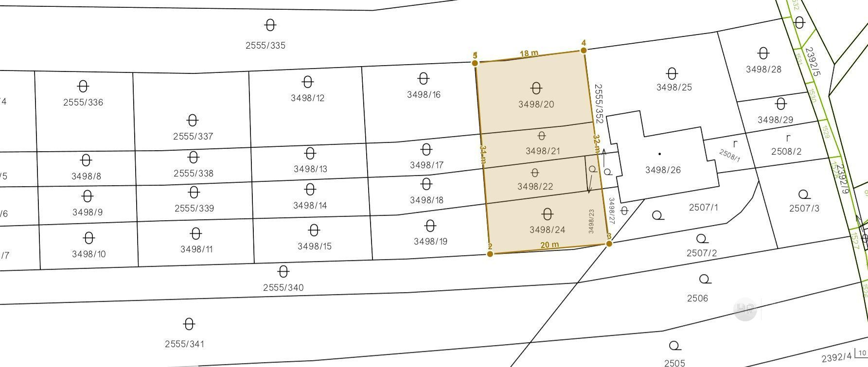 Pozemok sa rozprestiera sa na ploche 600 m², s šírkou 20 m a dĺžkou 30m. Je v susedstve už existujúceho Rodinného domu a v blízkom okolí prebiehajú ďalšie výstavby. Priamo na pozemok je privedená elektrická prípojka a dátový kábel. Súčasťou ceny je aj príslušný podiel na príjazdovej ceste ( 125m² ).