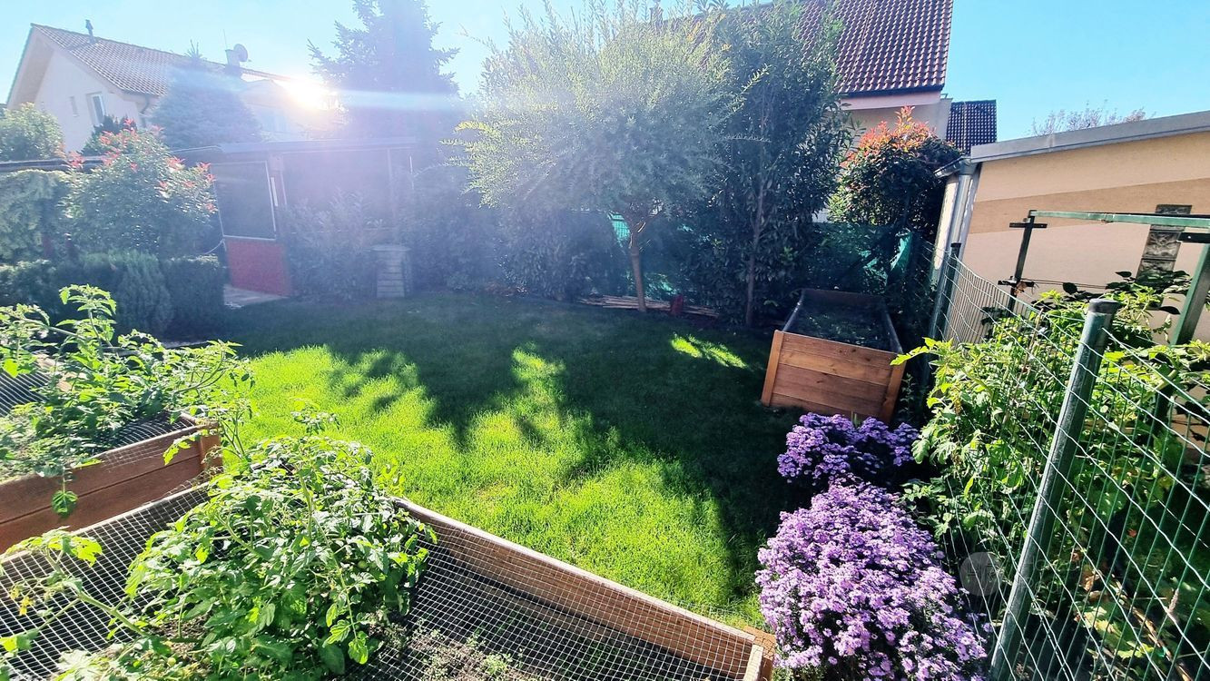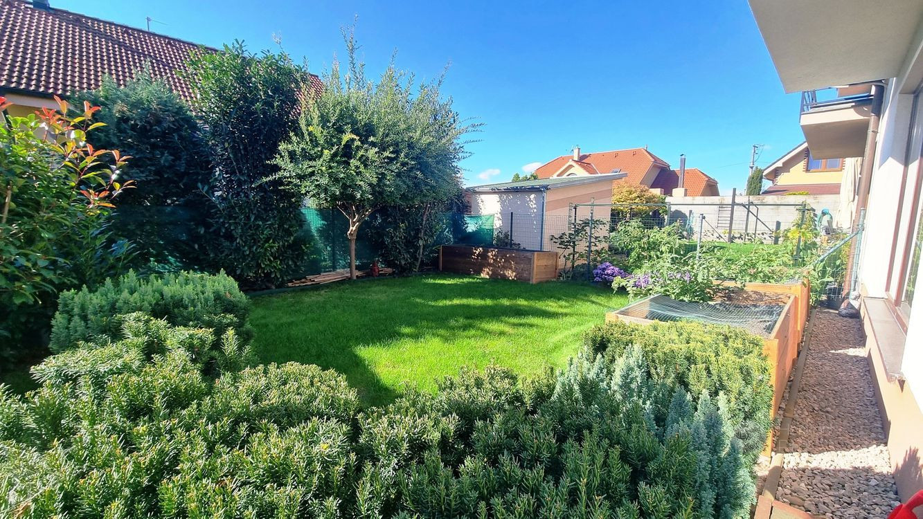 Krásna, okrasná udržiavaná záhrada je predurčená na oddych a relax. Pôsobí naozaj veľmi príjemne. Okrem okrasných drevín sú tu ovocné stromy a tri vyvýšené drevené záhony na bylinky, prípadne zeleninu a drobné ovocie. Na terase s pergolou je priestor na záhradné sedenie.