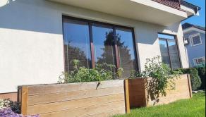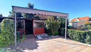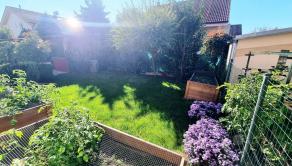 Krásna, okrasná udržiavaná záhrada je predurčená na oddych a relax. Pôsobí naozaj veľmi príjemne. Okrem okrasných drevín sú tu ovocné stromy a tri vyvýšené drevené záhony na bylinky, prípadne zeleninu a drobné ovocie. Na terase s pergolou je priestor na záhradné sedenie.